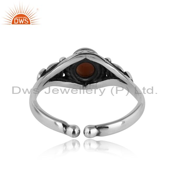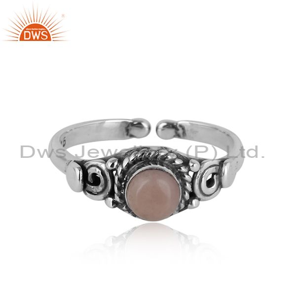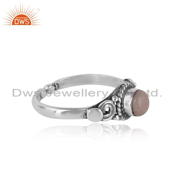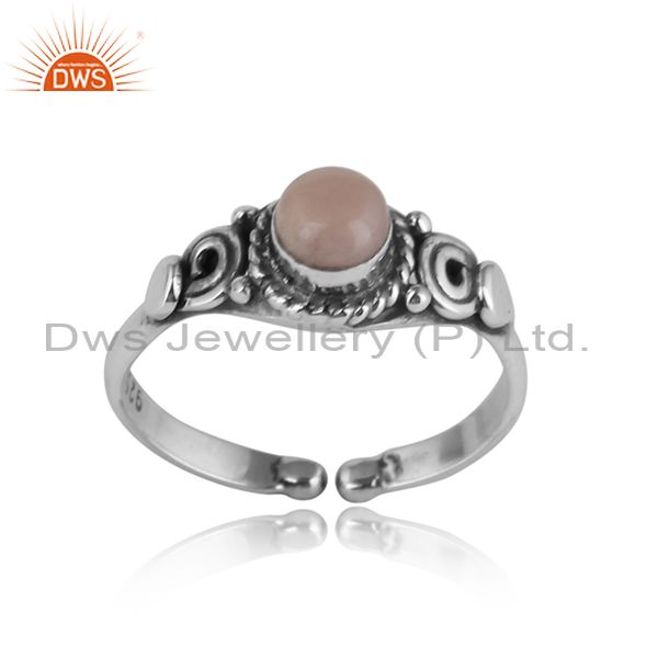 Handcrafted Designer Dainty Pink Opal Ring in Oxidized Silver 925