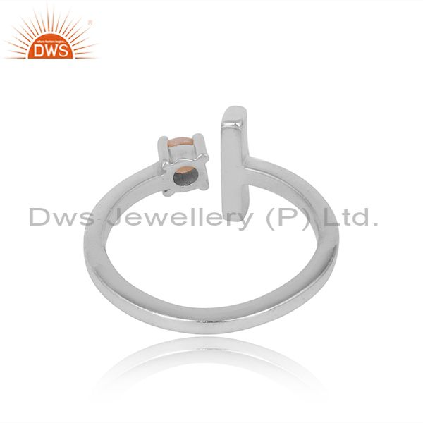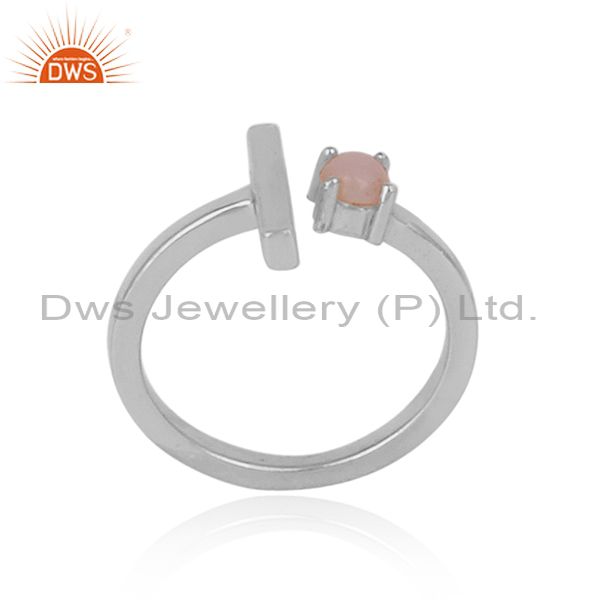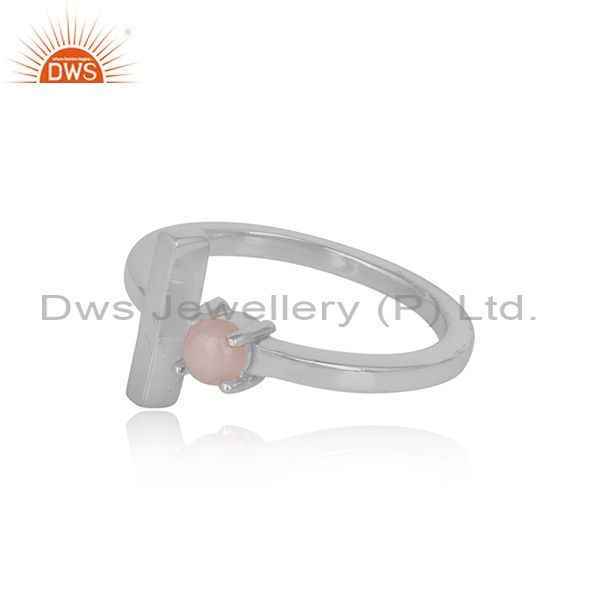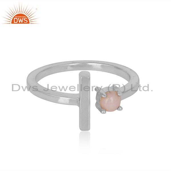Handcrafted Designer Sterling Silver Single Bar Ring with Pink Opal