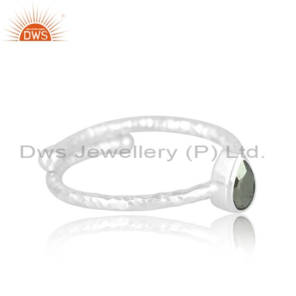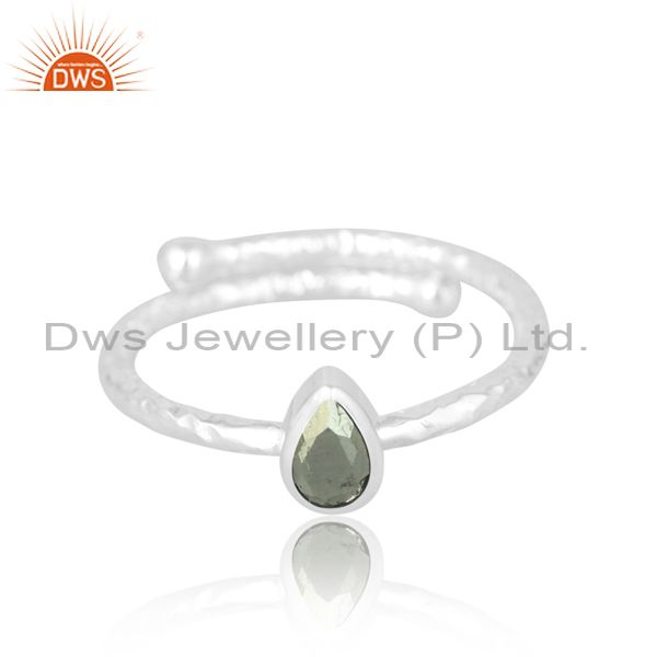 Handcrafted Pyrite Pear Cut Wire Ring Unisex In Silver