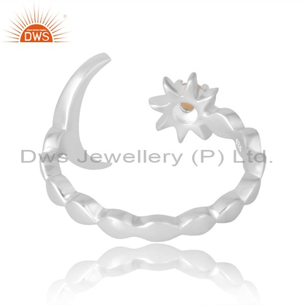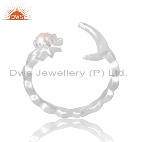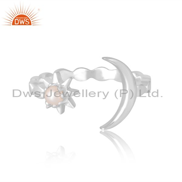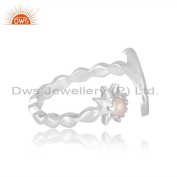 Handcrafted Silver Band With Moon And Pearl Flower For Women
