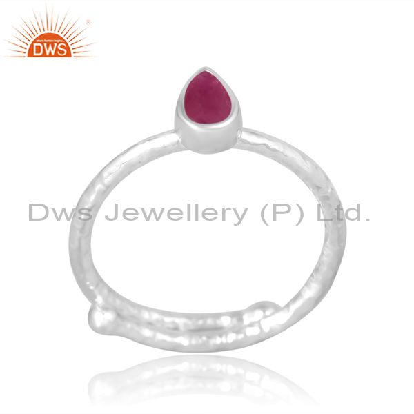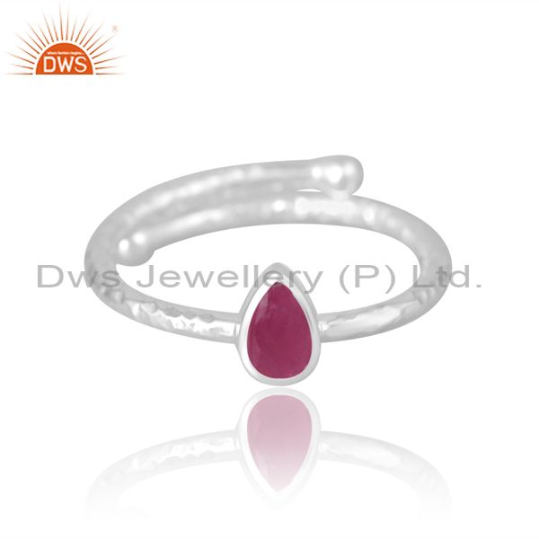 Handcrafted Silver Band With Pear Ruby Stone Women Proposal