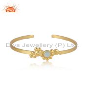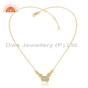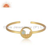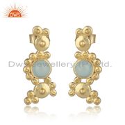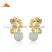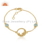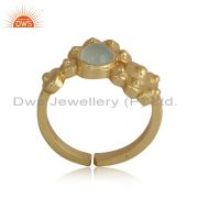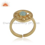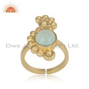 Handcrafted Silver Granule Bypass Aqua Chalcedony Gold on Ring