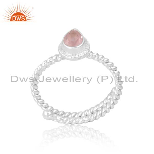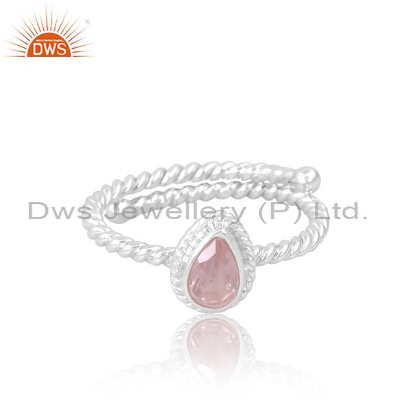 Handcrafted Silver Rose Quartz Ring For Girls