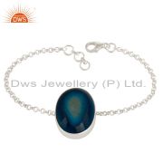 Handcrafted Sterling Silver Blue Drusy Agate Oval Cocktail Statement Ring