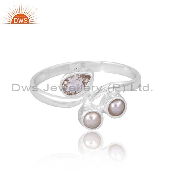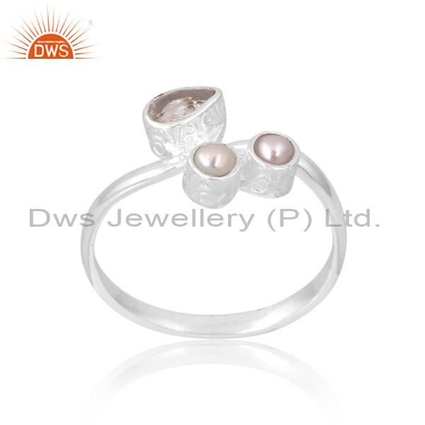 Handcrafted Sterling Silver Ring With Crystal Quartz & Pearl