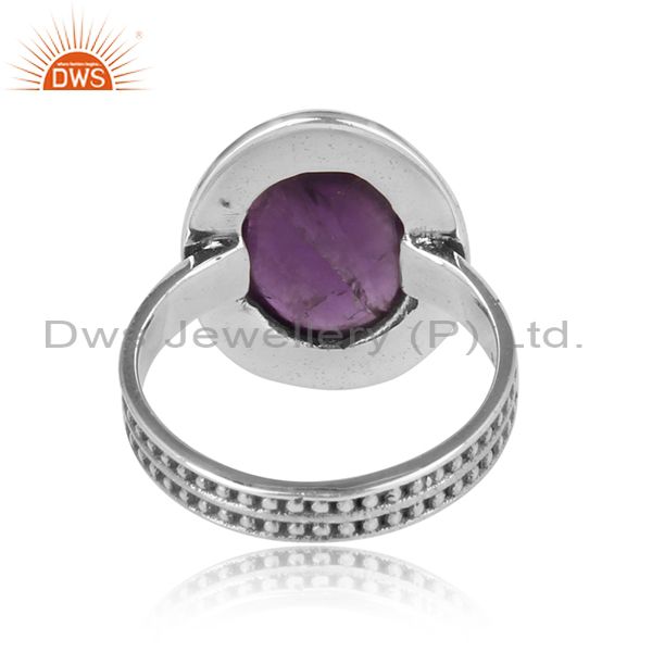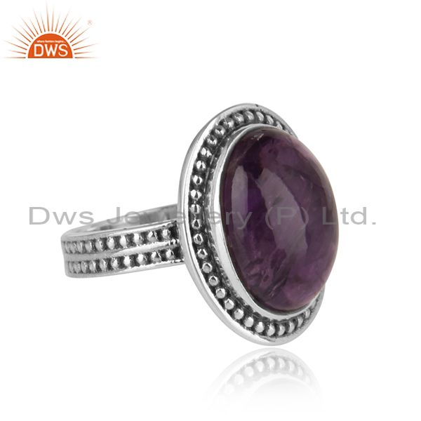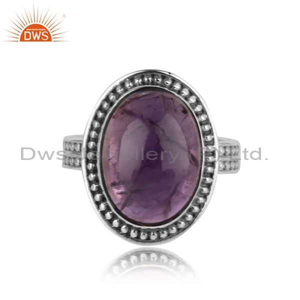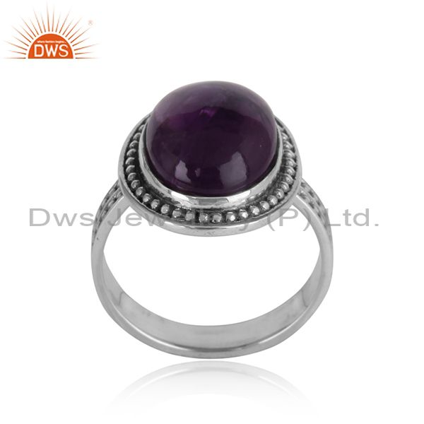 Handcrafted Textured Bold Amethyst Ring in Oxidized Silver 925