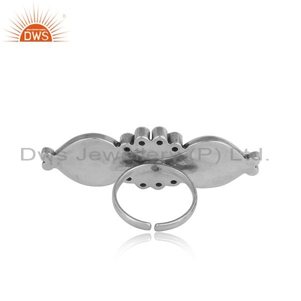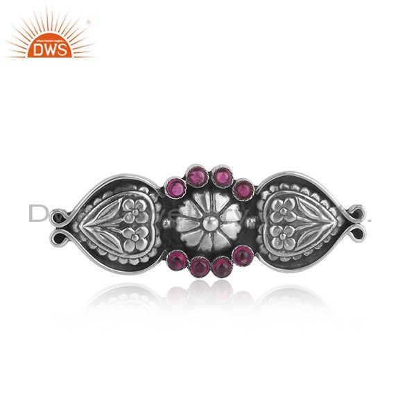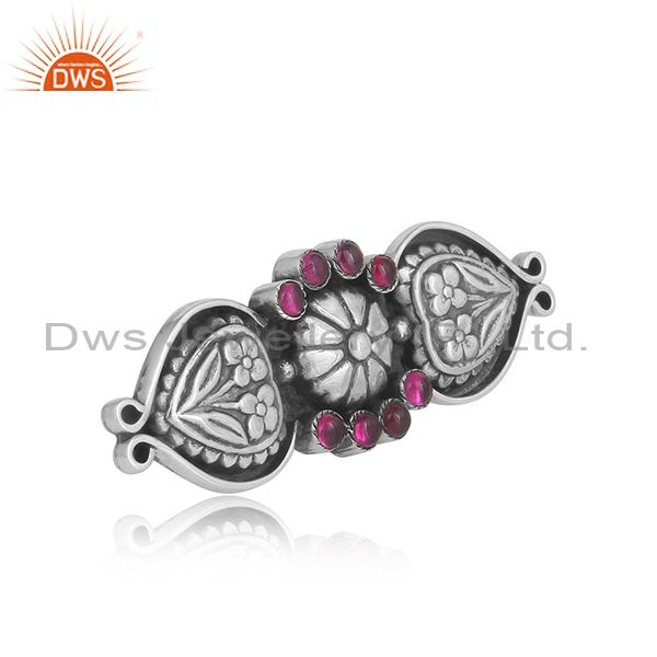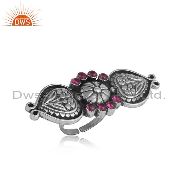 Handcrafted Tribal Design Ring In Oxidized Silver And Red Stone