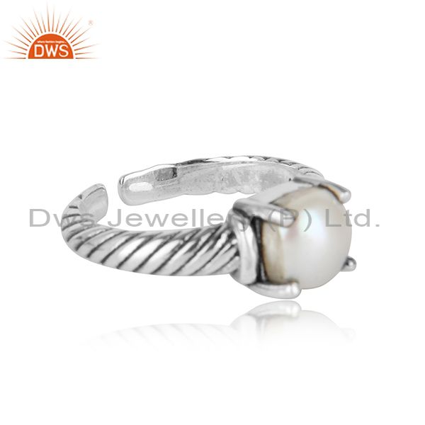 Handcrafted Twisted Bold Ring in Oxidized Silver 925 and Pearl
