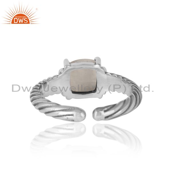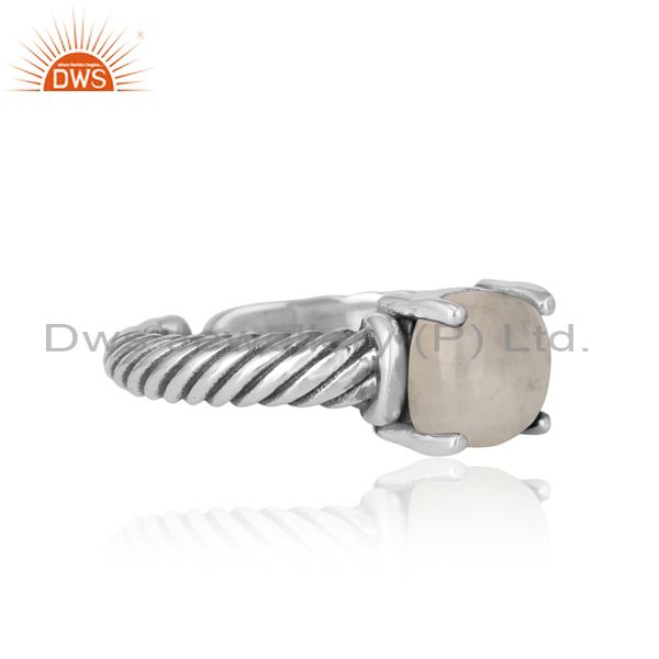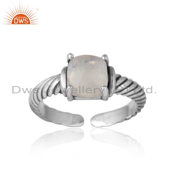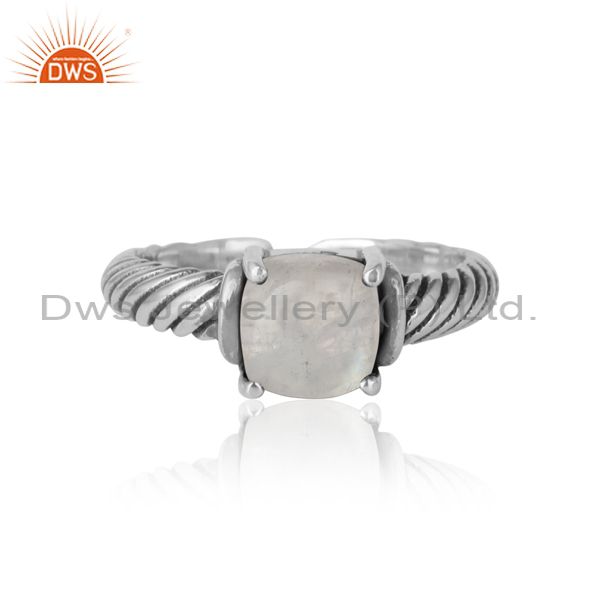 Handcrafted Twisted Bold Ring in Oxidized Silver Rainbow Moonstone