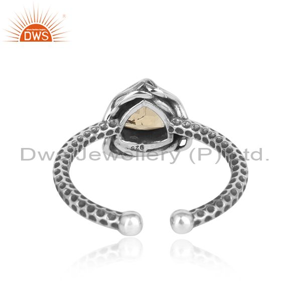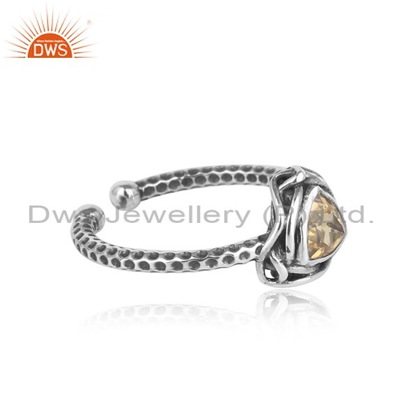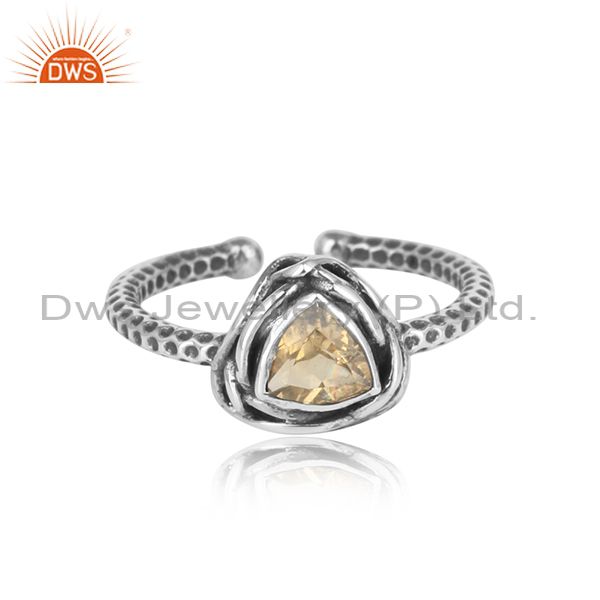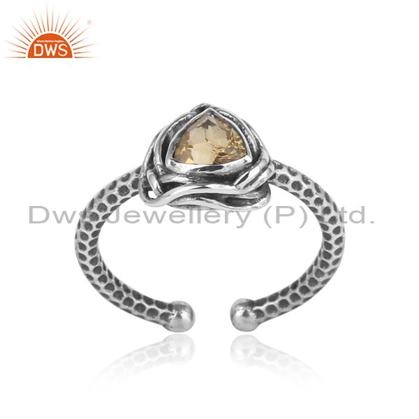 Handcrafted Wire Textured Oxidized Silver Ring with Citrine