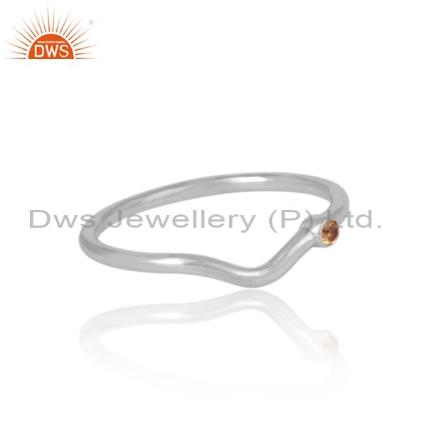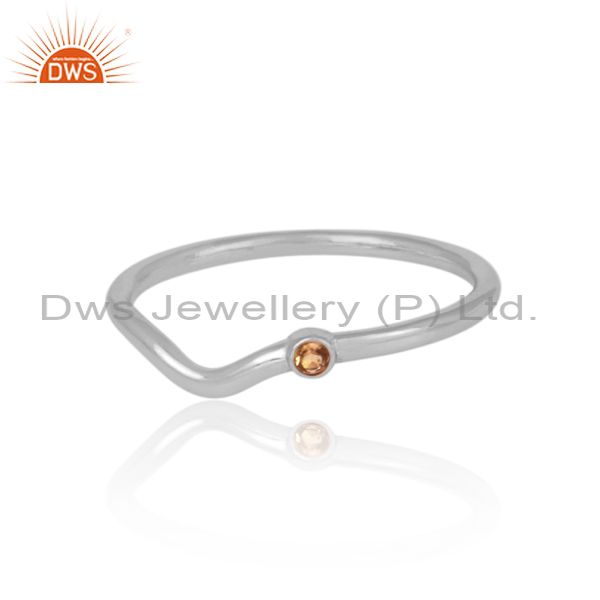 Handhammered Citrine Set Fine Sterling Silver Classic Ring