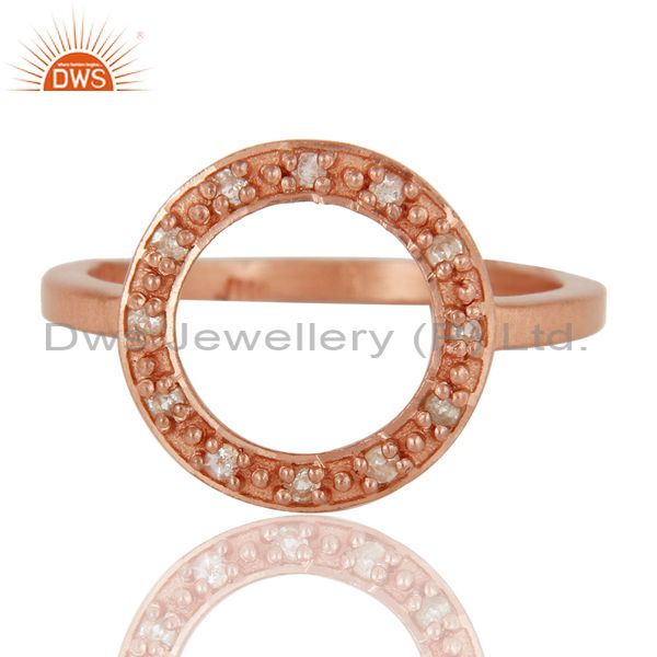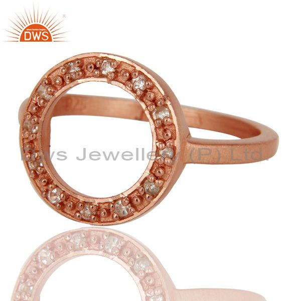 Handmade 18k Rose Gold Plated Sterling Silver Round Design Ring with White Topaz