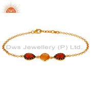Handmade 22K Gold Plated Sterling Silver Peach Moonstone Ring With Cz