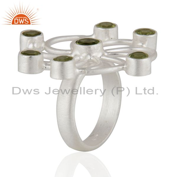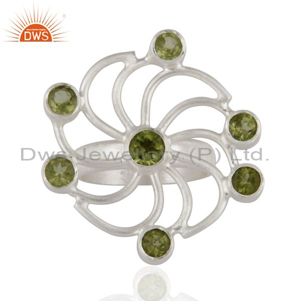 Handmade 925 Solid Sterling Silver Peridot Flower Designer Cocktail Ring