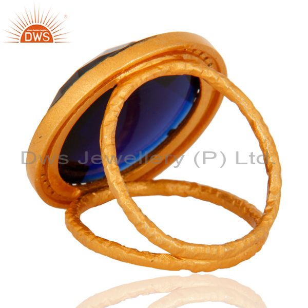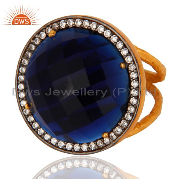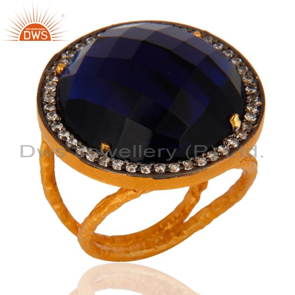 Handmade 925 Sterling Silver 24K Gold Plated Blue Corundum Designer Ring With Cz
