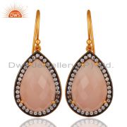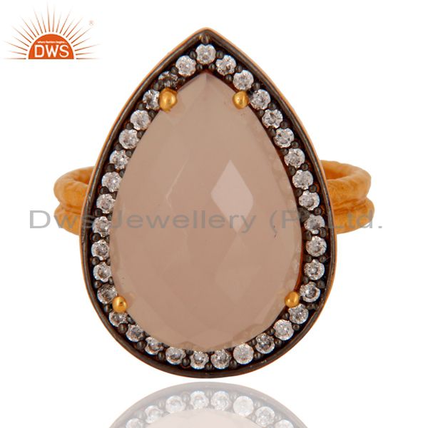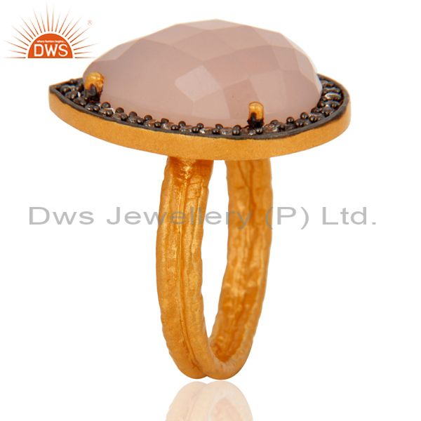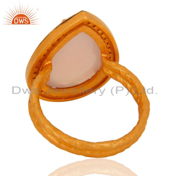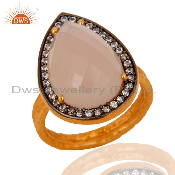 Handmade 925 Sterling Silver Genuine Rose Chalcedony Gold Plated Ring With Cz