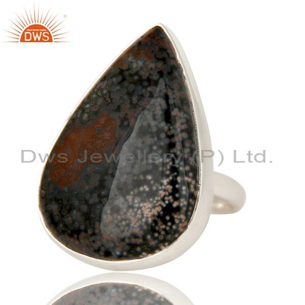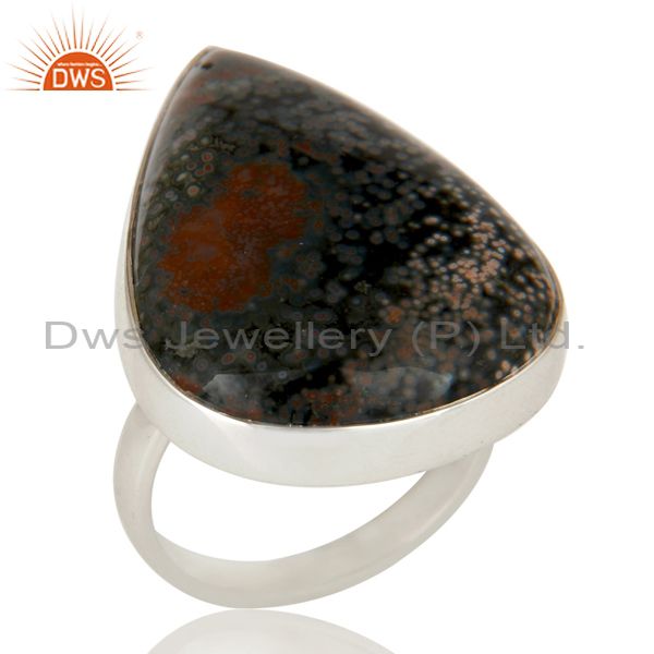 Handmade 925 Sterling Silver Ocean Jasper Gemstone Bezel Set Cocktail Ring