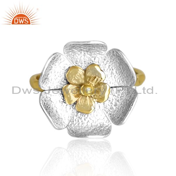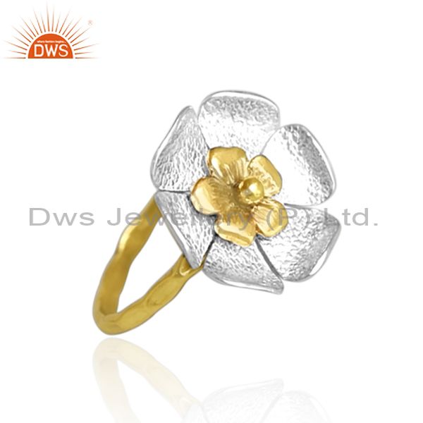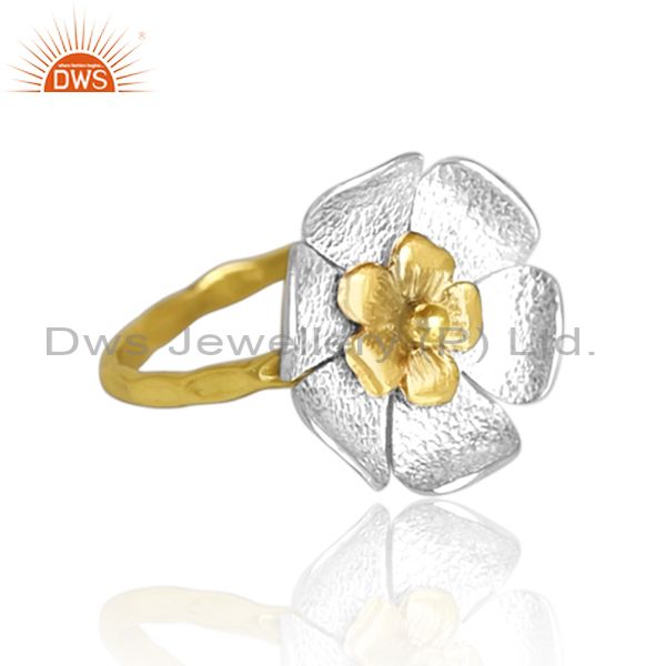 Handmade And Handhammered Brass Gold And White Floral Ring
