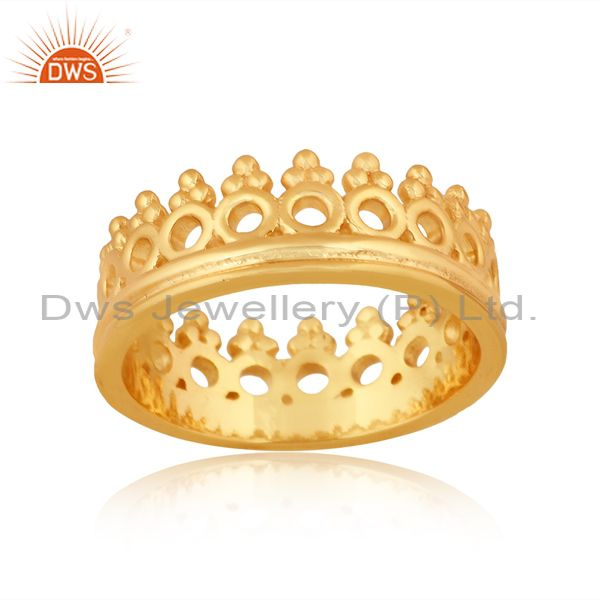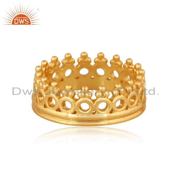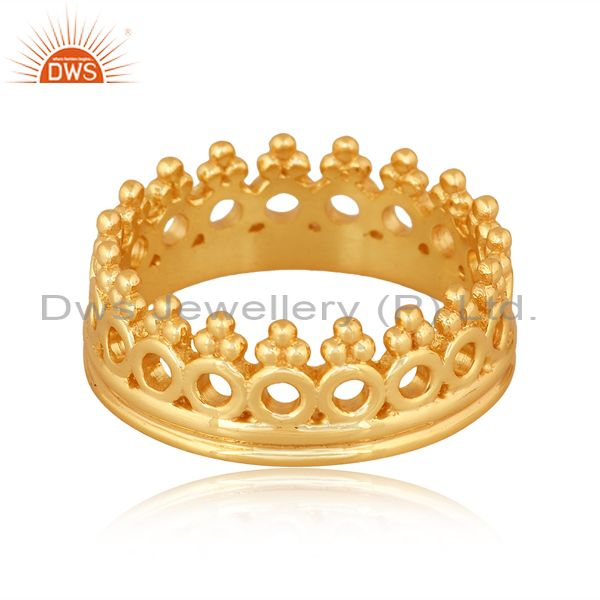 Handmade And Handhammered Brass Gold Crown Style Band Ring