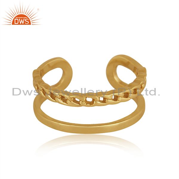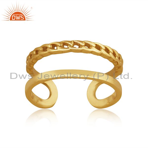Handmade And Handhammered Brass Gold Double Band Fancy Ring