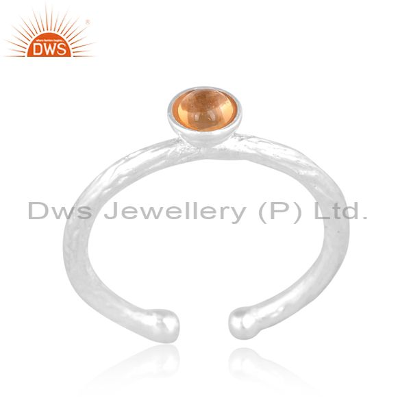 Handmade And Handhammered Citrine Set Classic Designer Ring