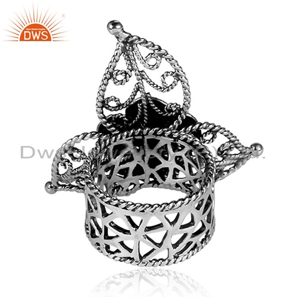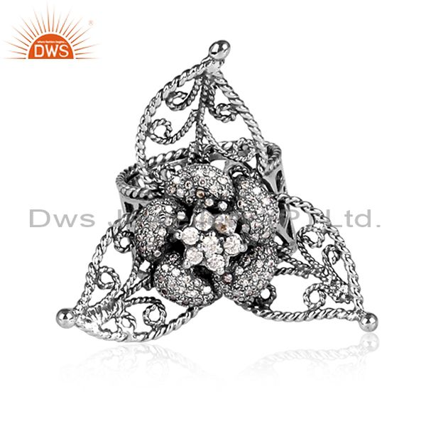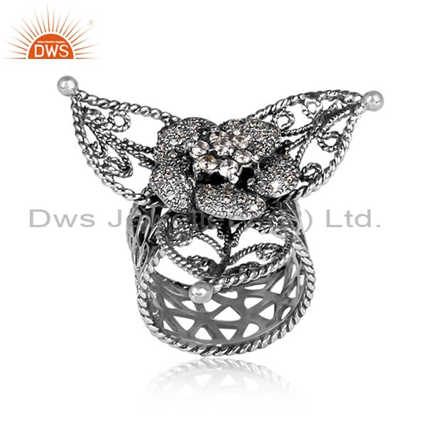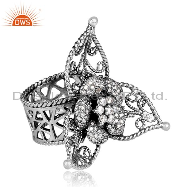 Handmade And Handhammered Cz Set Oxidized Silver Fancy Ring