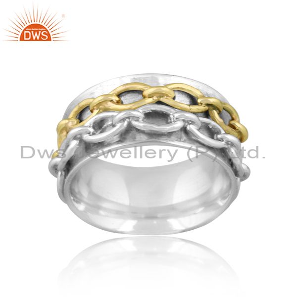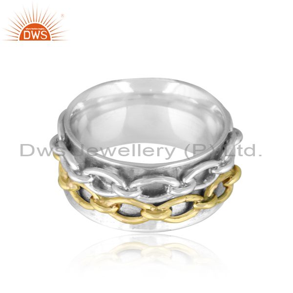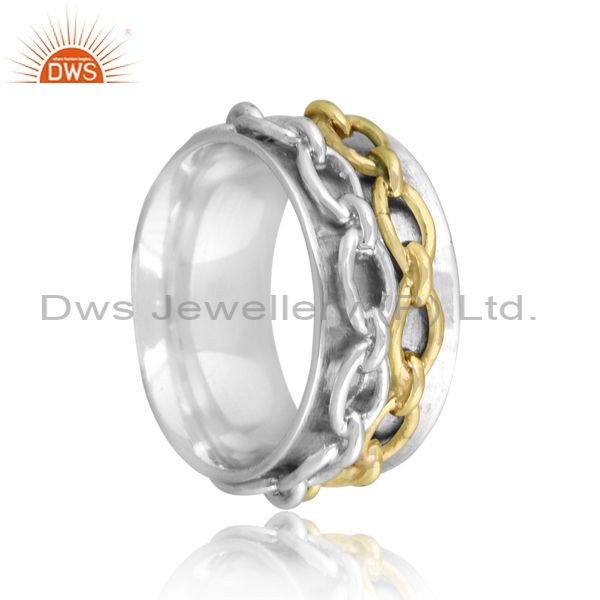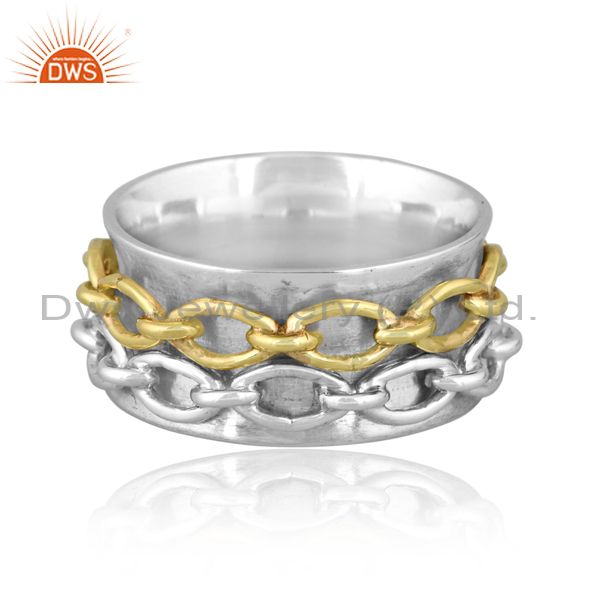 Handmade And Handhammered Gold On Fine 925 Silver Band Ring