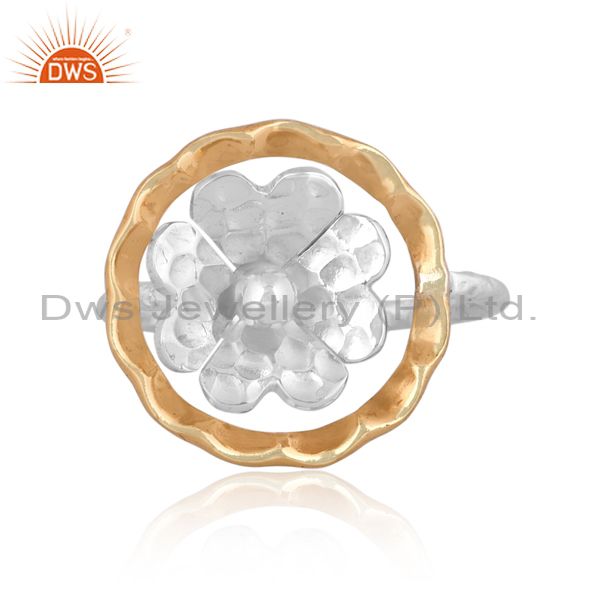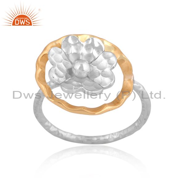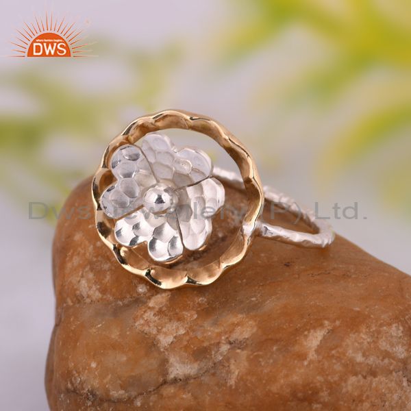 Handmade And Handhammered Gold On Fine Silver Abstract Ring
