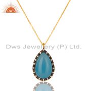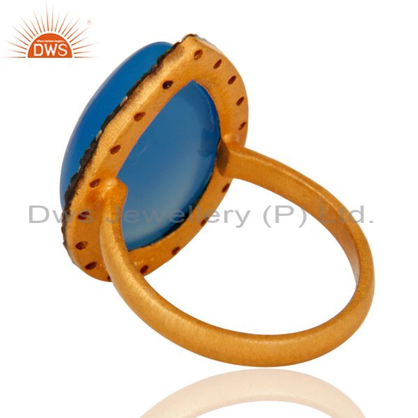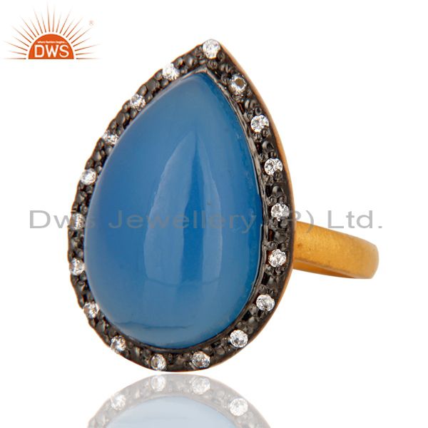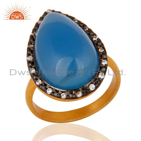 Handmade Aqua Blue Chalcedony Gemstone Gold Plated Sterling Silver Ring With Cz