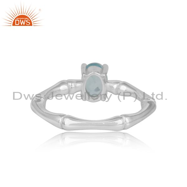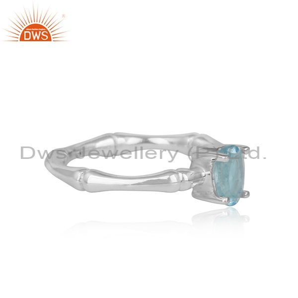 Handmade Bamboo Textured Silver 925 Ring with Blue Topaz