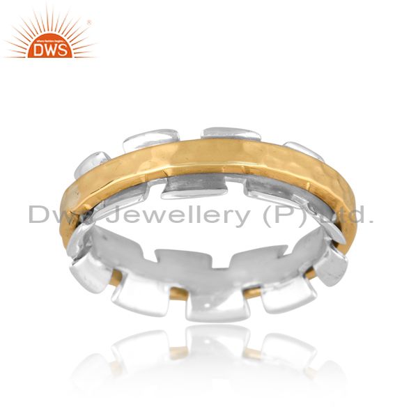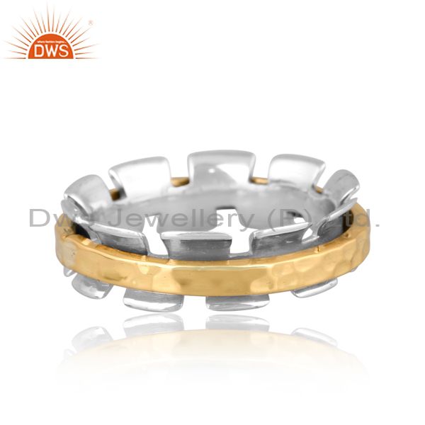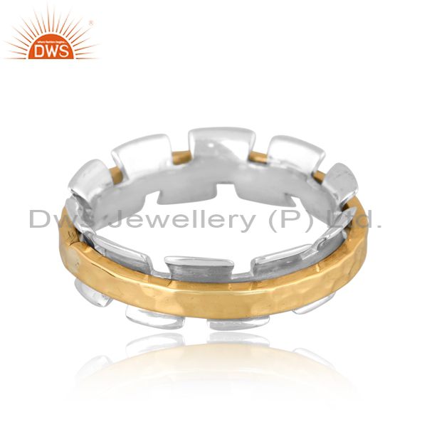 Handmade Band Style Gold On Fine 925 Silver Statement Ring