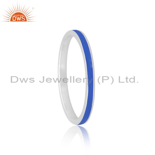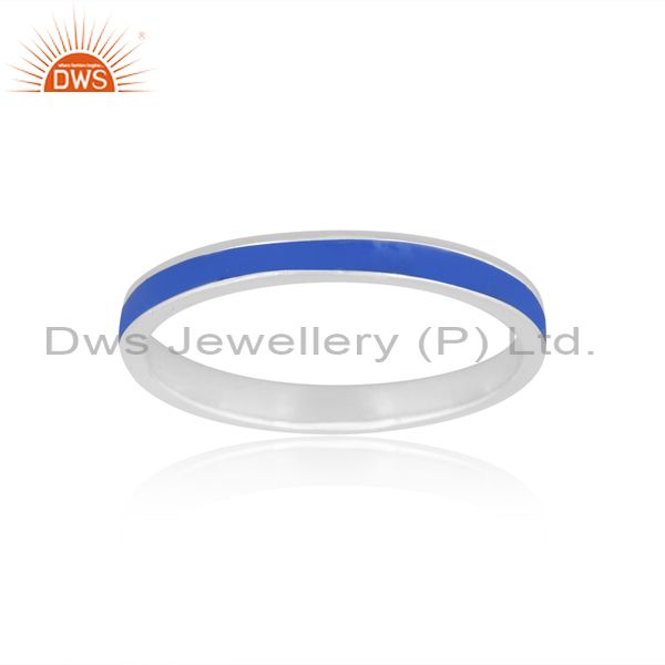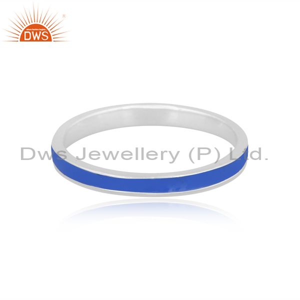 Handmade Blue Enamel Fine 925 Silver Statement Band Ring