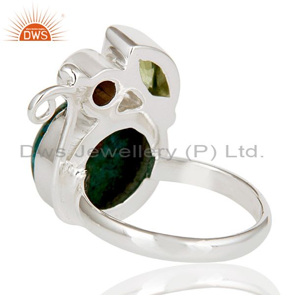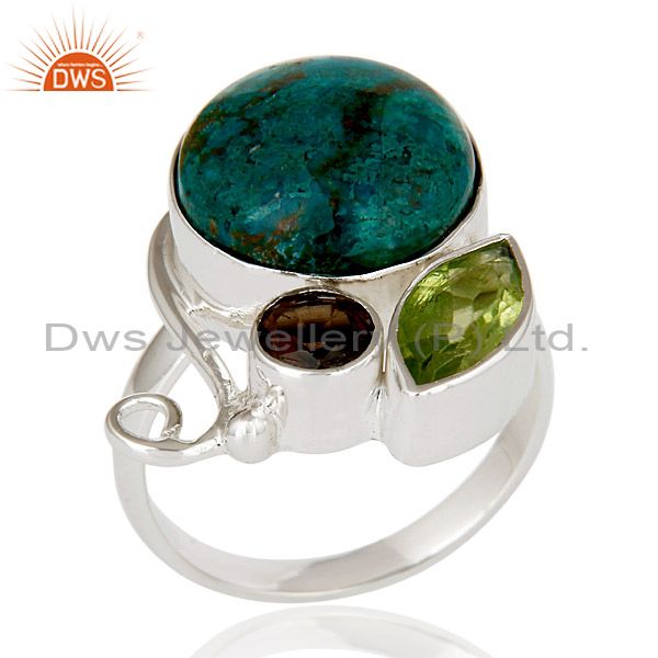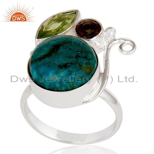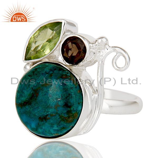Handmade Chrysocola, Peridot & Smokey Topaz 925 Sterling Silver Statement Ring