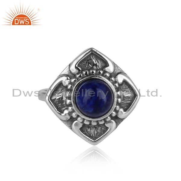 Handmade Classic Designer Ring in Oxidised Silver 925 with Lapis