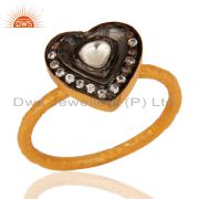 Handmade Cz Crystal Quartz Polki Gold Plated Solid Silver Fashion Ring