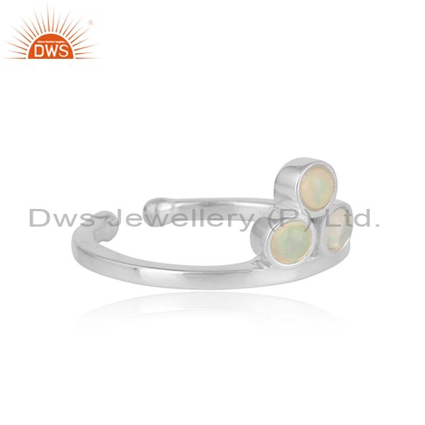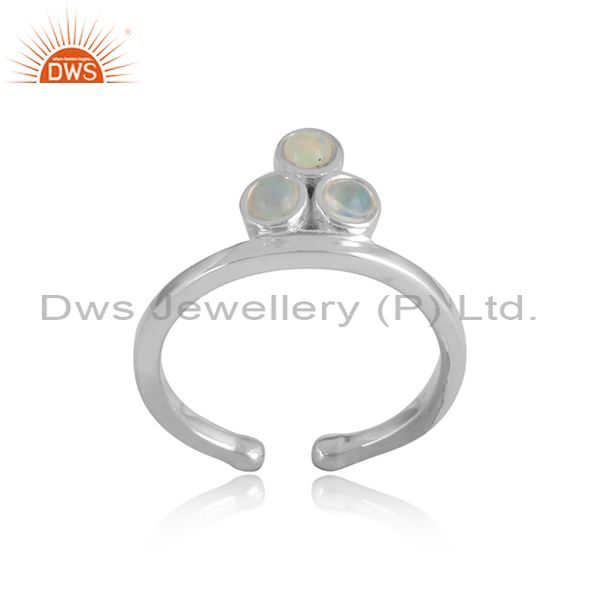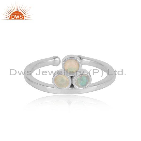 Handmade Dainty Eathiopian Opal Three Stone Ring in Sterling Silver