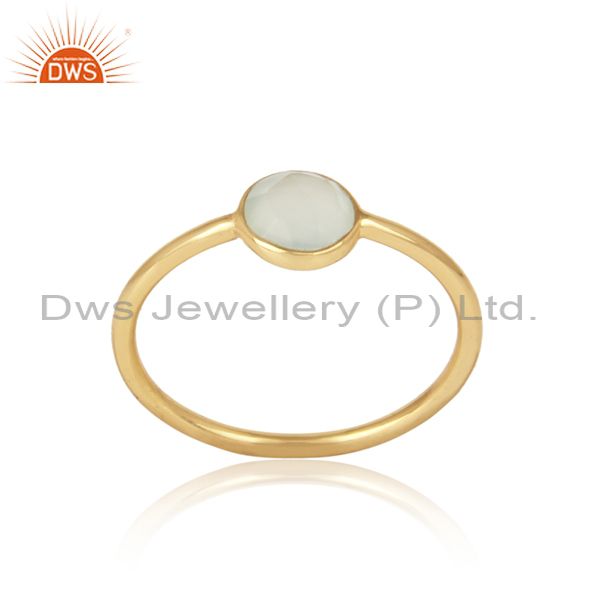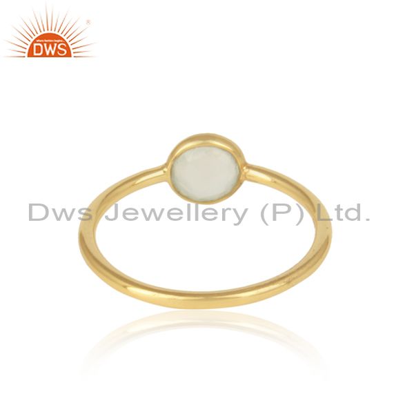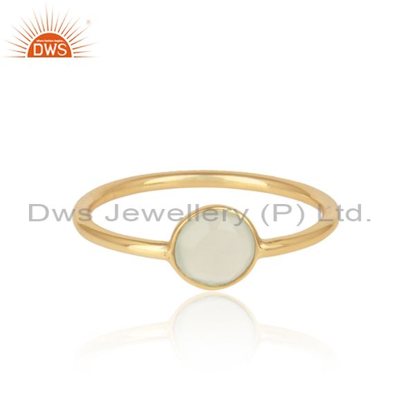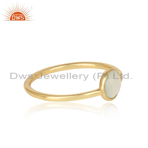 Handmade Dainty Gold On Silver Prehnite Chalcedony Solitaire Ring
