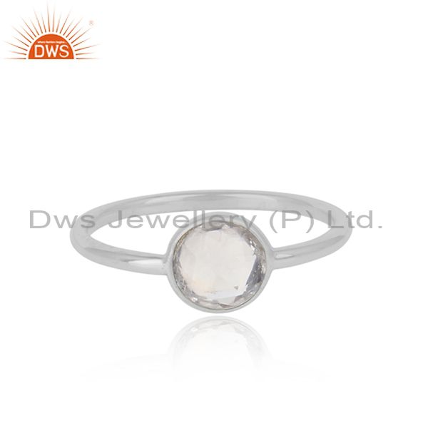 Handmade Dainty Sterling Silver Crystal Quartz Solitaire Ring