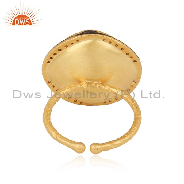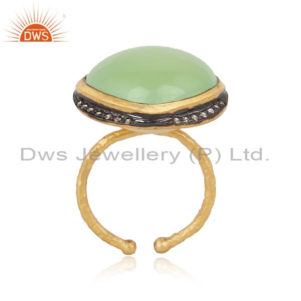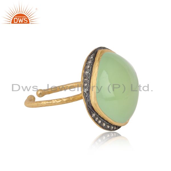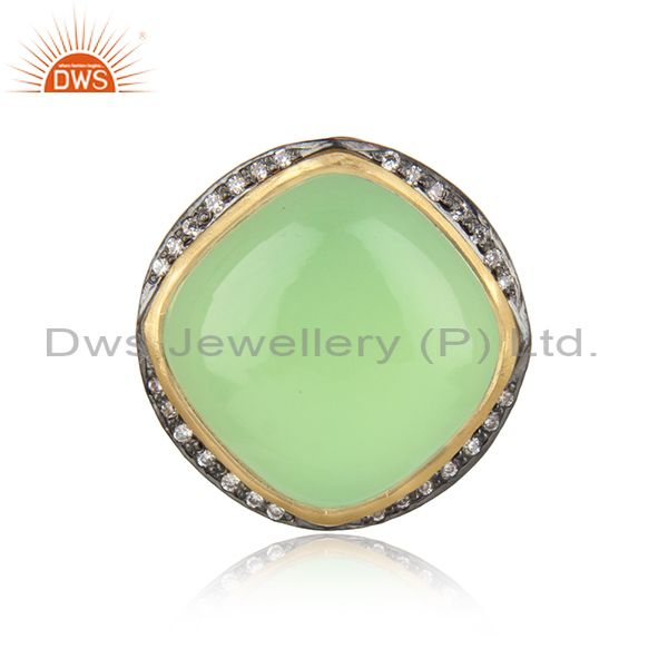 Handmade Design Gold on Silver Prehnite Chalcedony Cz Ring