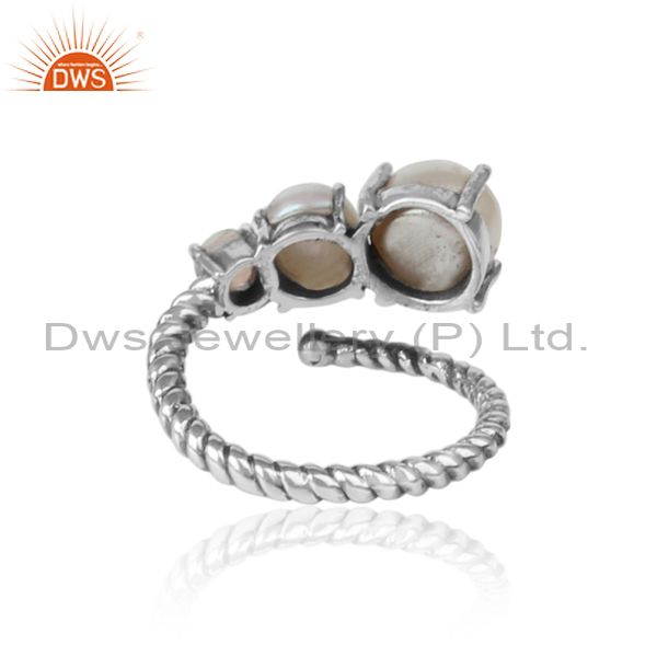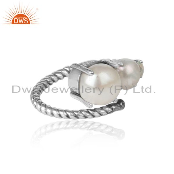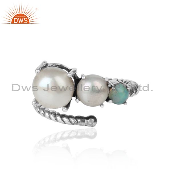 Handmade Designer Ring in Oxidized Silver Pearl and Ethiopian opal