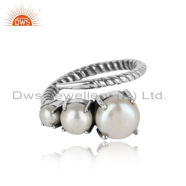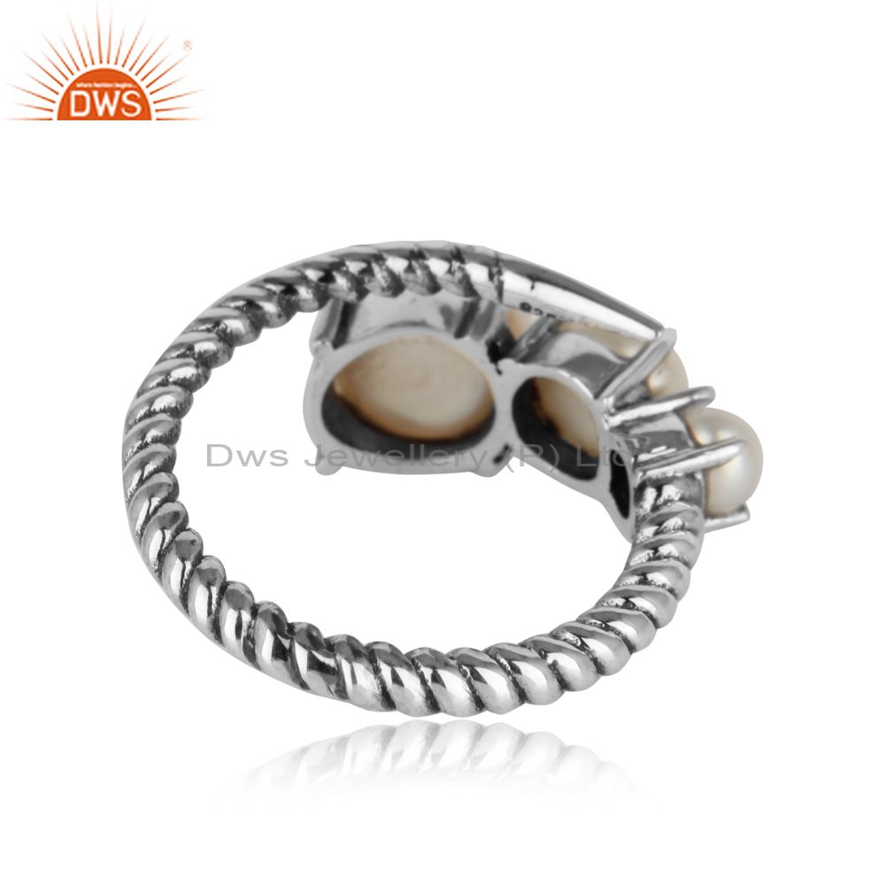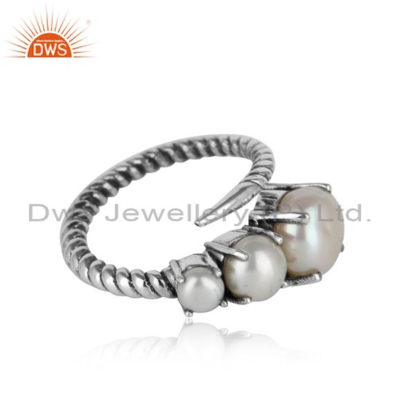 Handmade Designer Twisted Ring in Oxidized Silver 925 and Pearl
