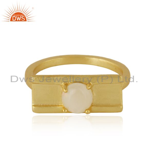 Handmade Designer Yellow Gold on Silver Bar Ring with Ethiopian Opal