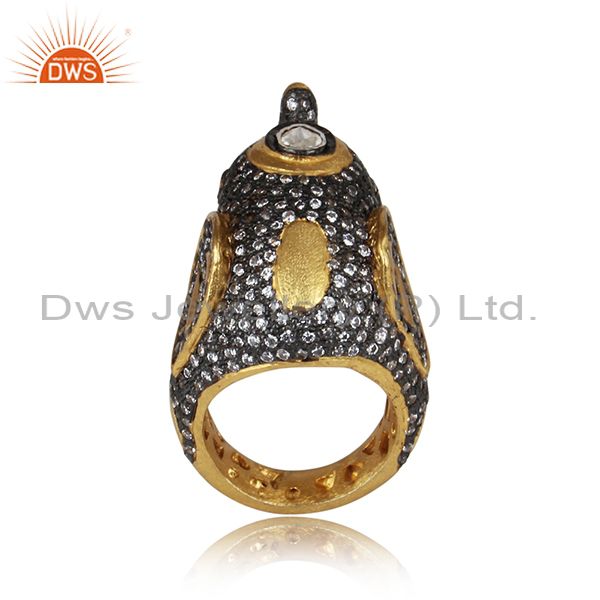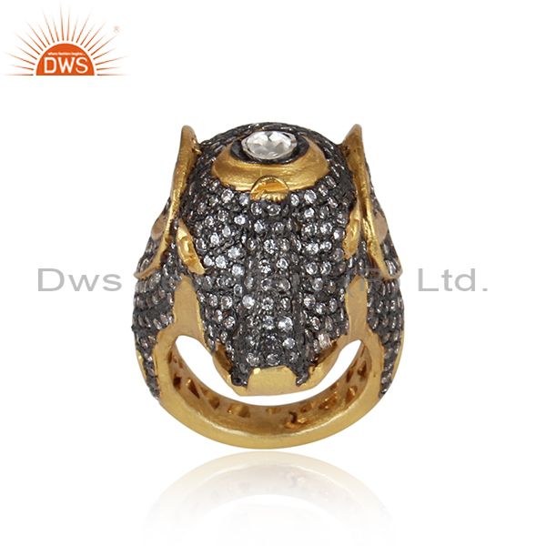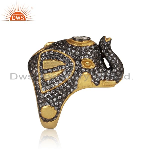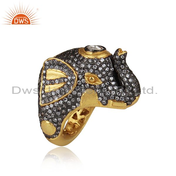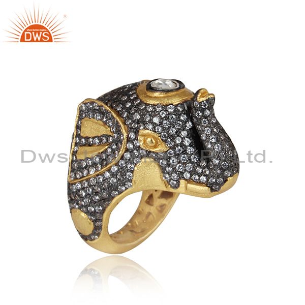 Handmade Elephant Design Gold on Silver Ring with Crystal and Cz