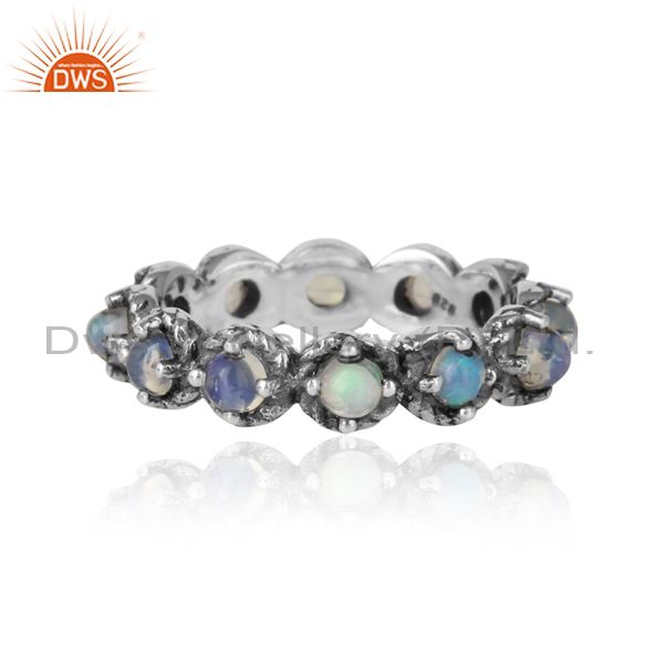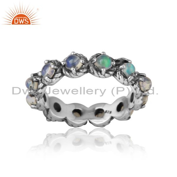 Handmade Eternity Ring In Oxidized Silver With Ethiopian Opal