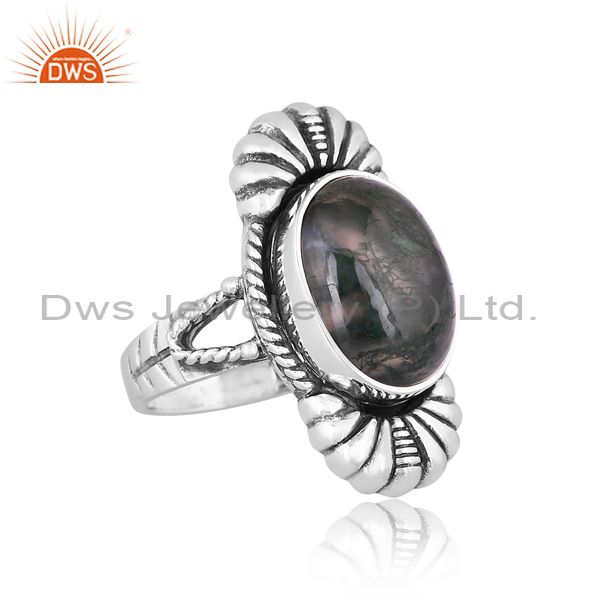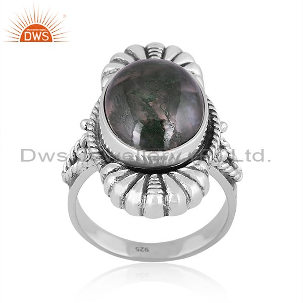 Handmade Ethnic Design Moss Agate Set Oxidized Silver Ring