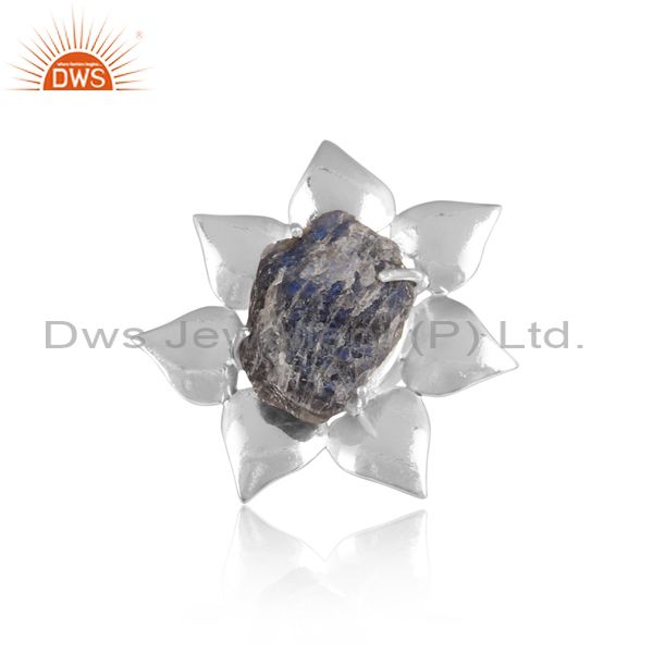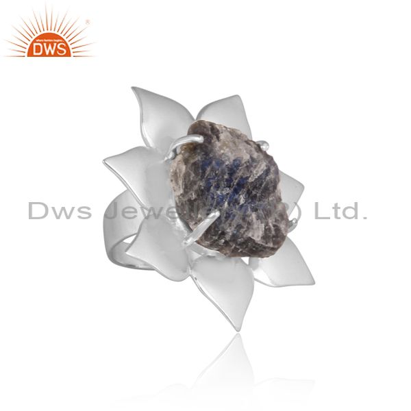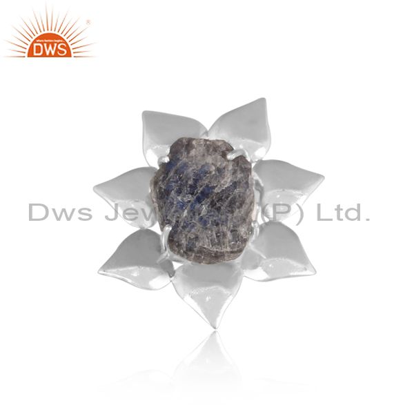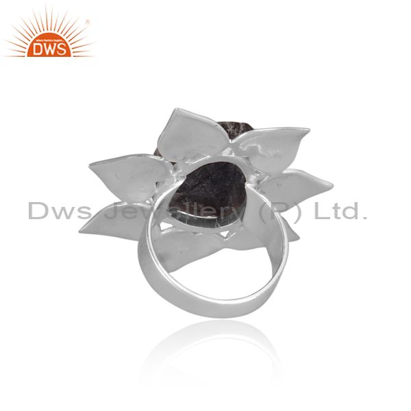 Handmade Fine 925 Silver Labradorite Set Floral Pattern Ring