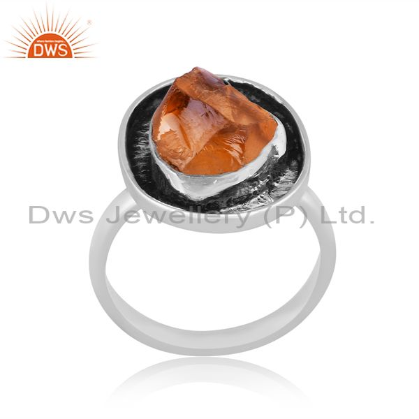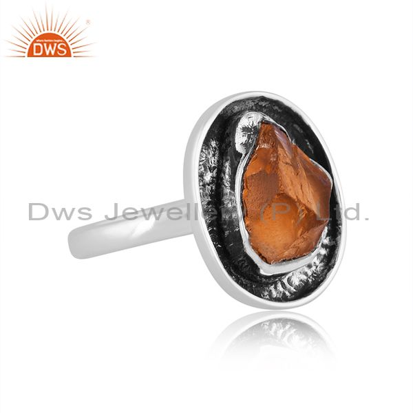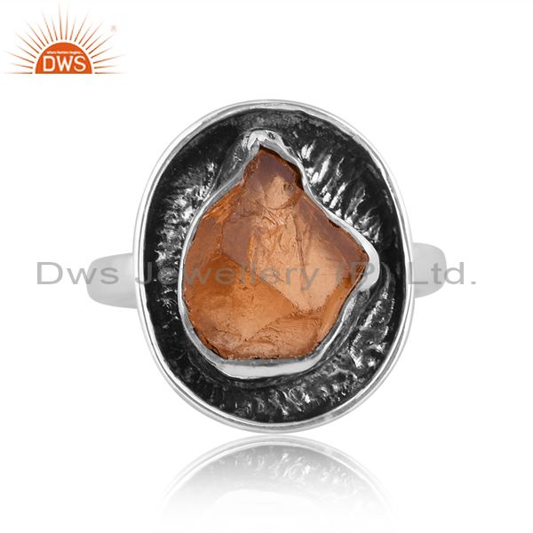 Handmade Fine 925 Silver Rough Cut Citrine Set Designer Ring