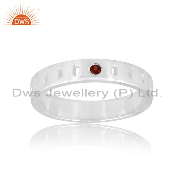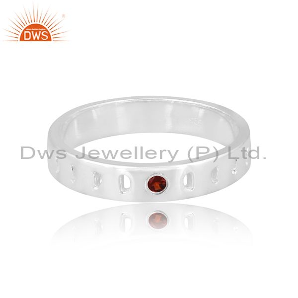 Handmade Garnet Set Fine Sterling Silver Statement Band Ring