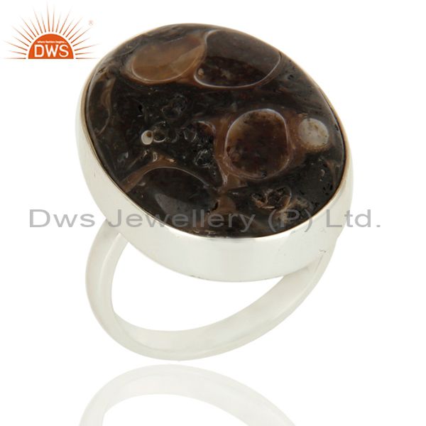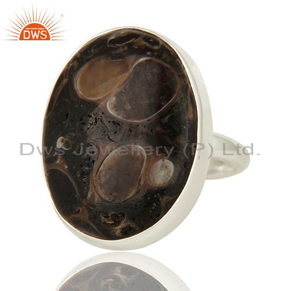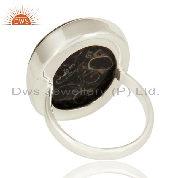 Handmade Genuine Sterling Silver Natural Turritella Agate Statement Ring