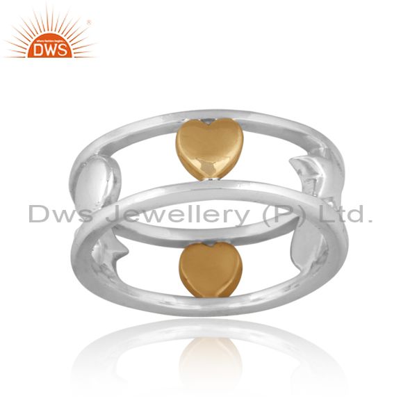 Handmade Gold On Fine 925 Silver Designer Double Band Ring